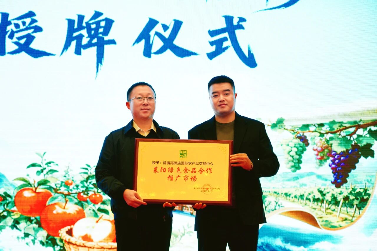 在授牌儀式環節,首衡集團分別被煙臺市優質農產品產業促進會授予"優秀推廣市場"稱號、被萊陽市農發集團授予"萊陽綠色食品合作推廣市場"稱號,肯定了首衡市場在煙臺農產品北方流通中的樞紐作用,首衡農副公司總經理米大帥上臺接牌。首衡市場3家商戶被授予“煙臺蘋果功勛經銷商”稱號,表彰其對煙臺蘋果推廣的突出貢獻,也進一步夯實了雙方合作的基礎。